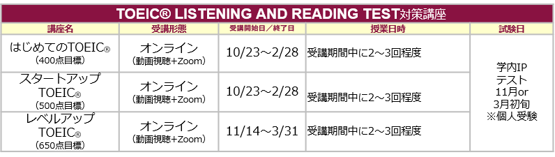COURSETOEIC L&R TEST®講座<目標スコア別>