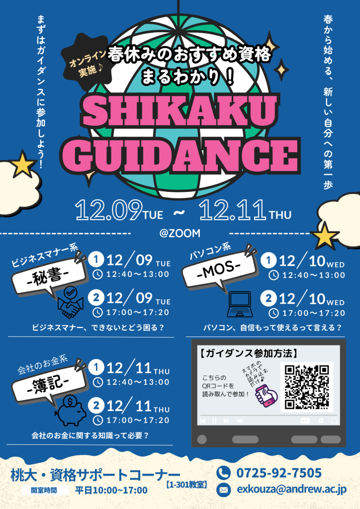 12/9~11開催!春から差がつく!おすすめ資格まるわかりWEEK★昼休みと放課後はZOOMに集合!!
